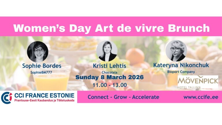 Exclusive Women’s Day Art de Vivre Brunch by CCIFE đź•– Sunday 08. March at 11:00 – 13:00 📍 Mövenpick Hotel Tallinn Buy a ticket The French–Estonian Chamber of Commerce and Industry, in collaboration with Mövenpick Hotel Tallinn, invites you to