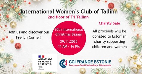 On Saturday, November 29, from 11:00 AM to 4:00 PM, with the International Women’s Club in Tallinn, join us at T1 alongside the French Embassy in Estonia for a festive day marked by joy and solidarity.